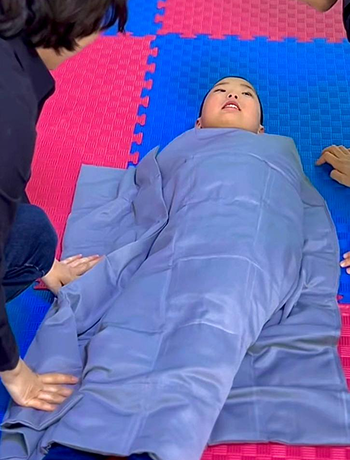 развитие схемы тела, концентрации внимания, тактильная и вестибулярная стимуляция.