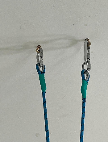 Крепление: ремни / стропы + карабин (потолочное крепление или стойка)